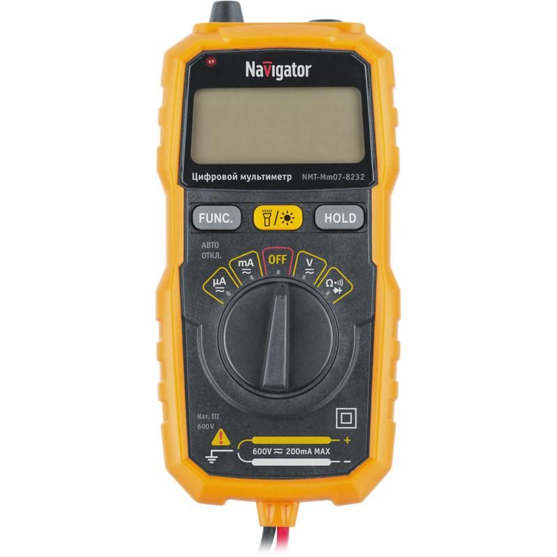 Мультиметр NMT-Mm07-8232 (8232) от бренда Navigator предназначен для измерения напряжения, тока и сопротивления в бытовых и профессиональных задачах. Это компактный и надёжный прибор из серии NMT-MM, подходящий для диагностики электронных цепей, проверки проводки и обслуживания оборудования.