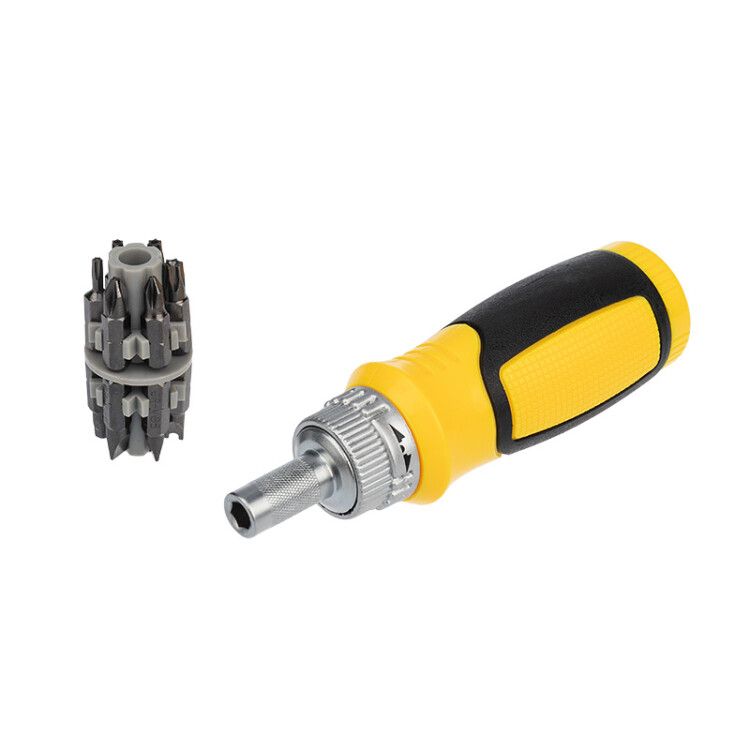 Набор 13 предметов с реверсивной отверткой REXANT 12-4778 - это универсальный инструмент, который подходит для монтажа и демонтажа различных крепежных изделий. В комплекте есть 12 вставок/бит разных типов, что позволяет работать с разными видами винтов, шурупов и саморезов.