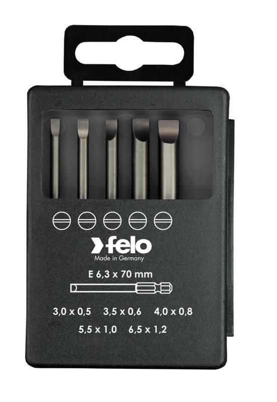 Набор бит SL Industrial 70-73 мм в кейсе, 5 шт от Felo (арт. 03091716) - компактный набор шлицевых бит для точного и надёжного закручивания и откручивания крепежа с плоскими шлицами. Подходит для профессионального монтажа на производствах, в мастерских и на объектах с высокой нагрузкой.