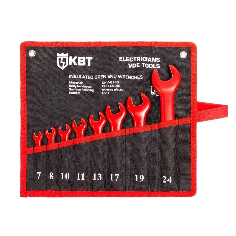 Набор диэлектрических однорожковых ключей НИИ-24 серия ЭКСПЕРТ, ЭКСПЕРТ КВТ, КВТ совместим со всеми стандартными болтами и гайками, имеющими указанные размеры граней. Удобен для монтажа и демонтажа в плотных пространствах благодаря компактной форме рожков. Не требует специальных инструментов для установки - применяется вручную. Работает в паре с другими средствами защиты: перчатками, штангами, изолирующими матами.