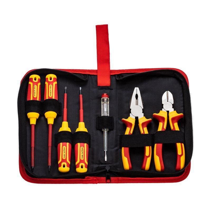 Набор диэлектрического инструмента REXANT RI-01 - компактный набор из 7 инструментов с диэлектрическим покрытием, рассчитанный на работу с электрооборудованием до 1000 В. Подходит для монтажа, обслуживания и ремонта в условиях повышенной опасности поражения током. Набор диэлектрического инструмента REXANT RI-01 укомплектован в тканевый пенал с магнитным держателем для удобного хранения.