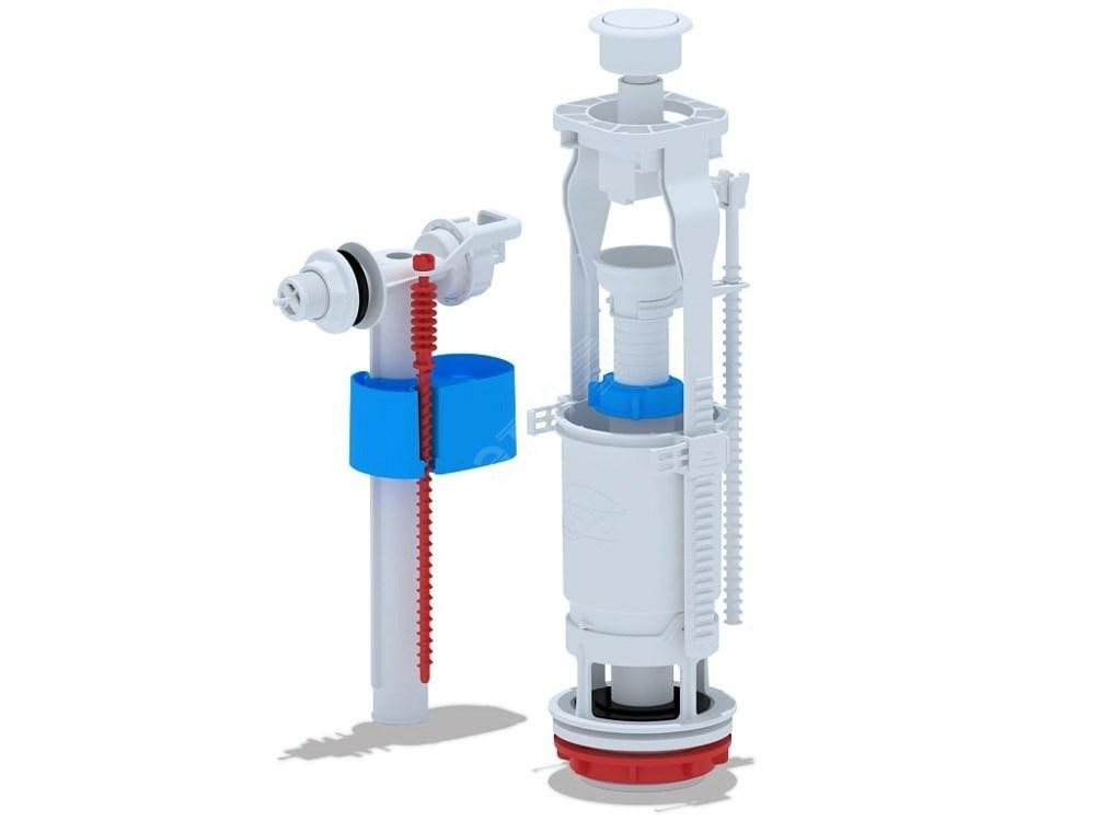 Набор предназначен для организации системы наполнения и сброса воды в бачке унитаза. Подходит для ремонта старых систем, модернизации сантехники и новой установки в жилых домах, офисах, общественных туалетах. Боковая подводка обеспечивает подключение к трубе, расположенной сбоку бачка - типичная схема для многих моделей.