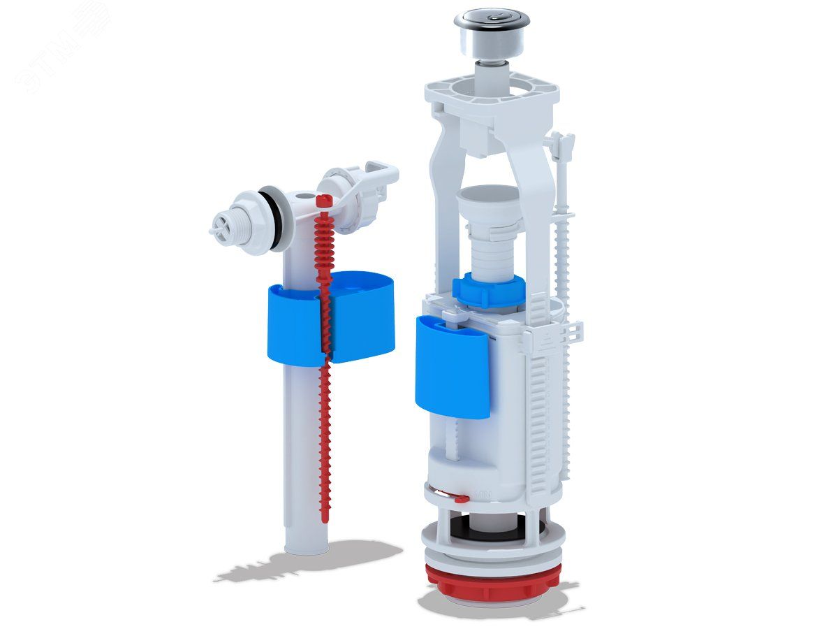 Этот набор предназначен для монтажа или ремонта механизма спуска воды в напольных и подвесных унитазах с боковым подключением к водопроводу. Подходит для частного жилья, офисов, общественных учреждений. Эконом-версия обеспечивает снижение расхода воды за счёт оптимизированного режима смыва - идеально для мест с высокой проходимостью.