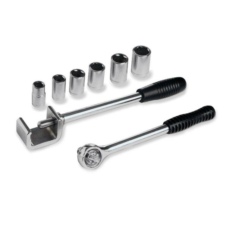 - Количество в наборе: 8 шт. - включает ключ, струбцинu и 6 сменных головок