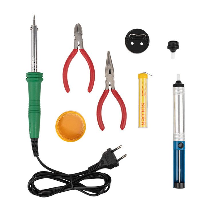 Паяльник имеет стандартную резьбу для фиксации жала диаметром 4,5 мм - совместим с большинством заменяемых насадок того же размера. Для установки нового жала необходимо остудить паяльник, выкрутить старый и вставить новый, плотно затянув. Подставка устанавливается на любую ровную поверхность. Инструменты (бокорезы, тонкогубцы) не требуют настройки - готовы к использованию сразу после распаковки.