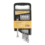 Набор гаечных комбинированных трещоточных ключей с шарниром НТКШ-5 (8-14) серия KBT-PROFESSIONAL - 79201 КВТ представляет собой удобный и надежный инструмент, который идеально подходит для проведения различных слесарно-монтажных, авторемонтных и сантехнических работ.
