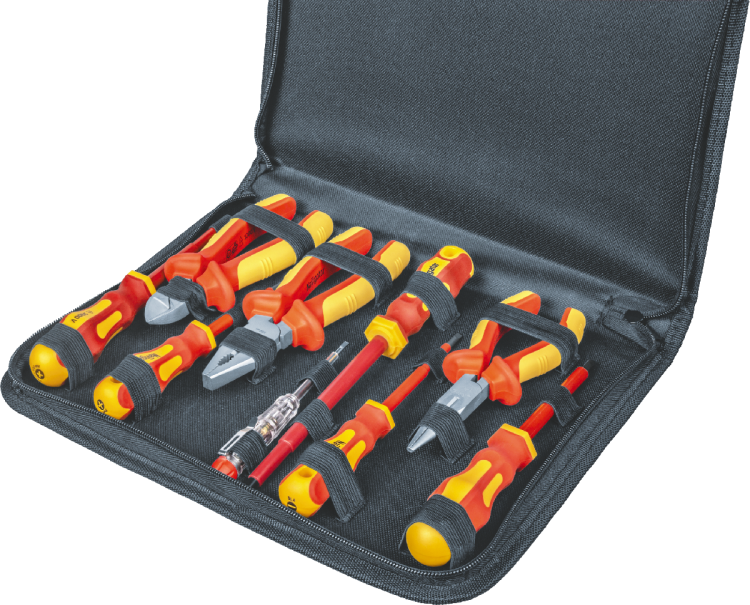 Набор инструмента диэлектрического 9 предметов NHT-Ind01-H9 от бренда Navigator - компактный набор для безопасного выполнения электромонтажных работ на объектах с напряжением до 1000 В. Все инструменты имеют диэлектрическое покрытие, подходят для работы под напряжением и легко помещаются в сумку для переноски.