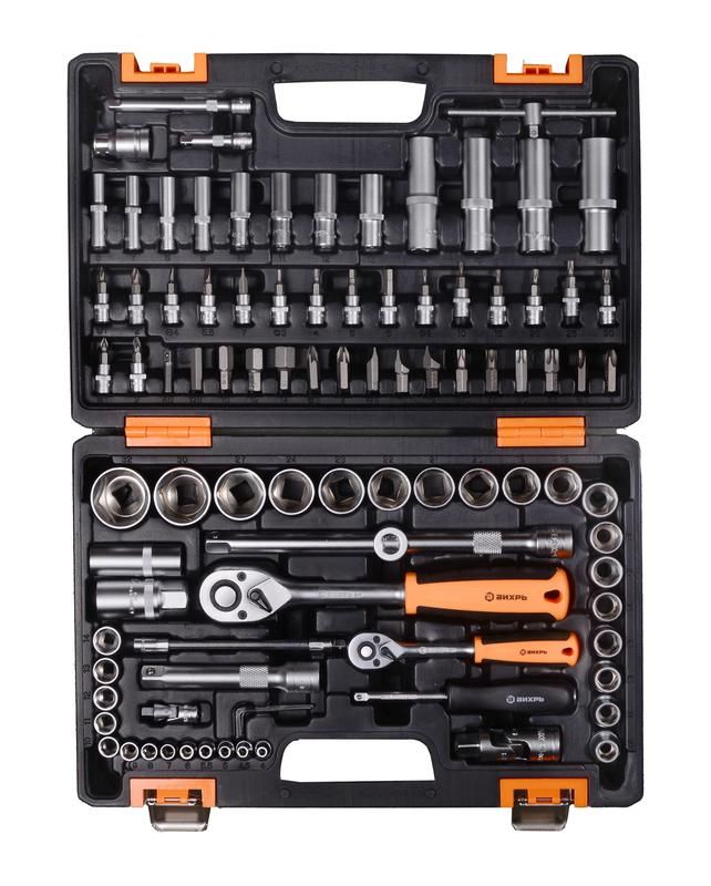 Набор инструментов Вихрь 73/6/7/7 - комплект из 94 элементов с головками на 1/2 и 1/4 дюйма, выполненный из хромованадиевой стали (CrV). Подходит для профессионального и бытового ремонта, где требуется надёжный и долговечный инструмент.