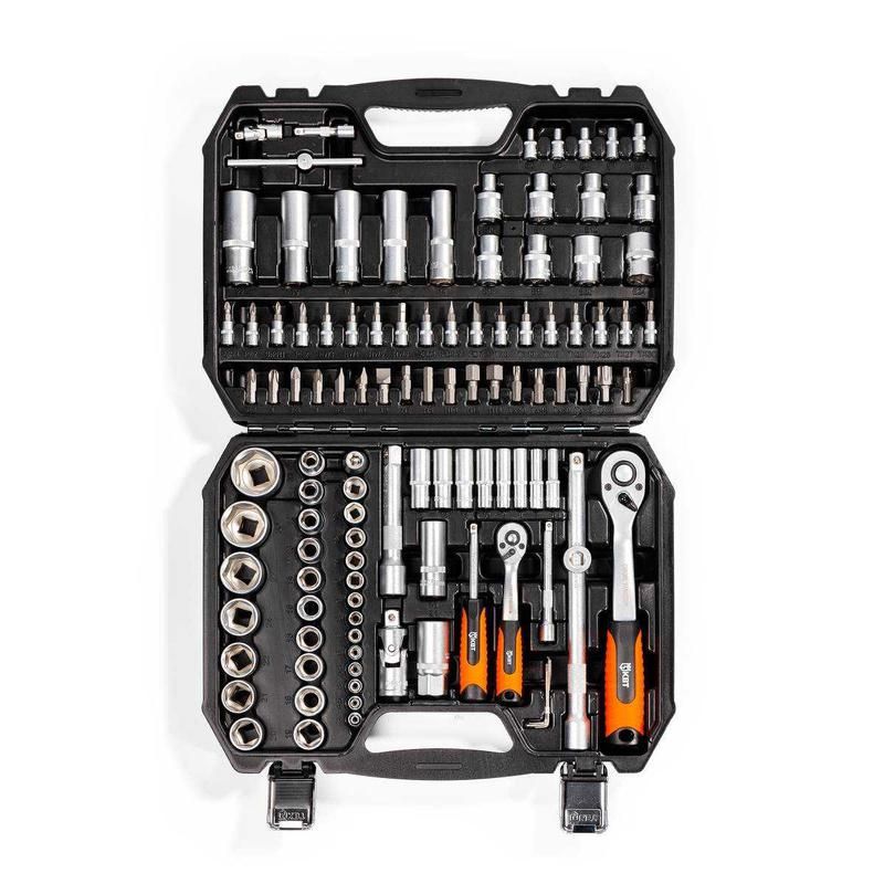 Набор инструментов НАИ-08/110 от бренда КВТ - это комплект из 110 элементов, предназначенный для точных и надёжных работ в автосервисе, слесарной мастерской и на объектах сантехники и отопления. Набор инструментов НАИ-08/110 обеспечивает универсальное решение для монтажа, ремонта и обслуживания трубопроводов, узлов двигателя и крепёжных соединений.