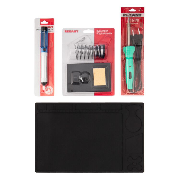 Набор К20 для пайки продвинутый (паяльник с подсветкой, подставка, экстрактор, коврик) - это универсальный инструмент для монтажа радиоэлементов, который обеспечивает безопасность, комфорт и высокую производительность в процессе пайки.