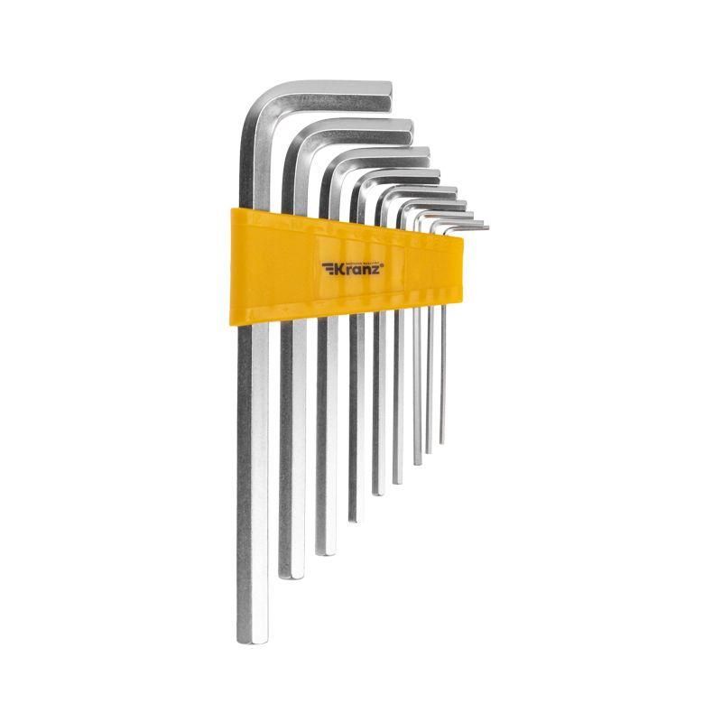 Набор ключей имбусовых HEX 2,0–12 мм, CrV, 9 шт., удлиненные от бренда Kranz (арт. kr-12-5213) - компактный и прочный инструмент для точного затяжки и демонтажа шестигранных крепежей. Подходит для сборки оборудования, ремонта станков и работ в условиях ограниченного доступа.