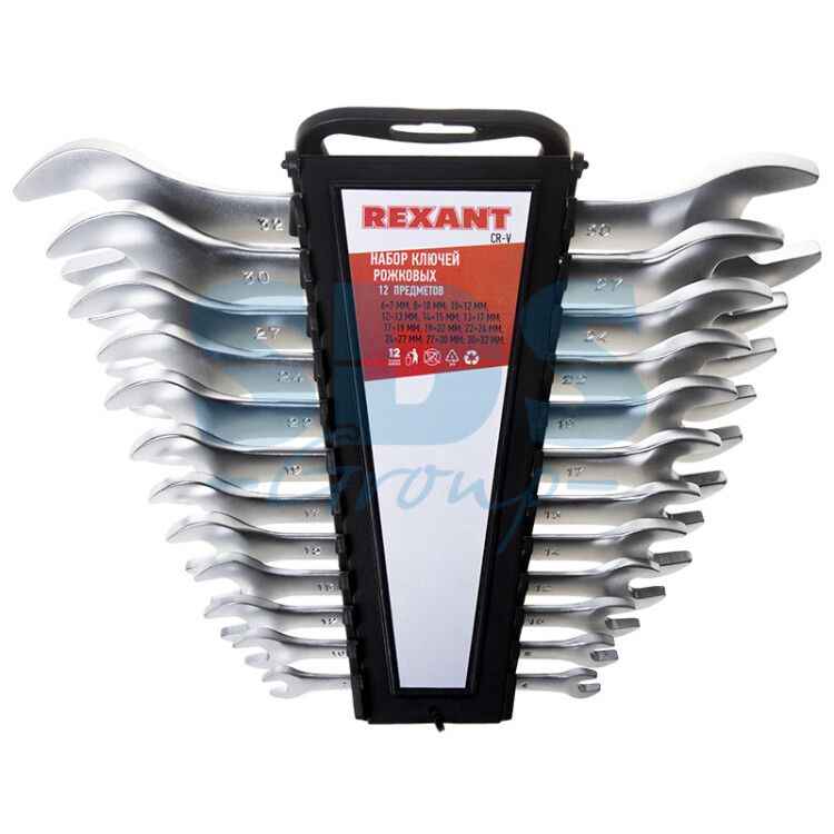 Набор ключей рожковых 6–32 мм 12 предметов CrV, зеркальное хромирование от REXANT - комплект из 12 универсальных рожковых ключей для точной работы с резьбовым крепежом. Подходит для ремонта, сборки и обслуживания оборудования в условиях повышенной нагрузки.