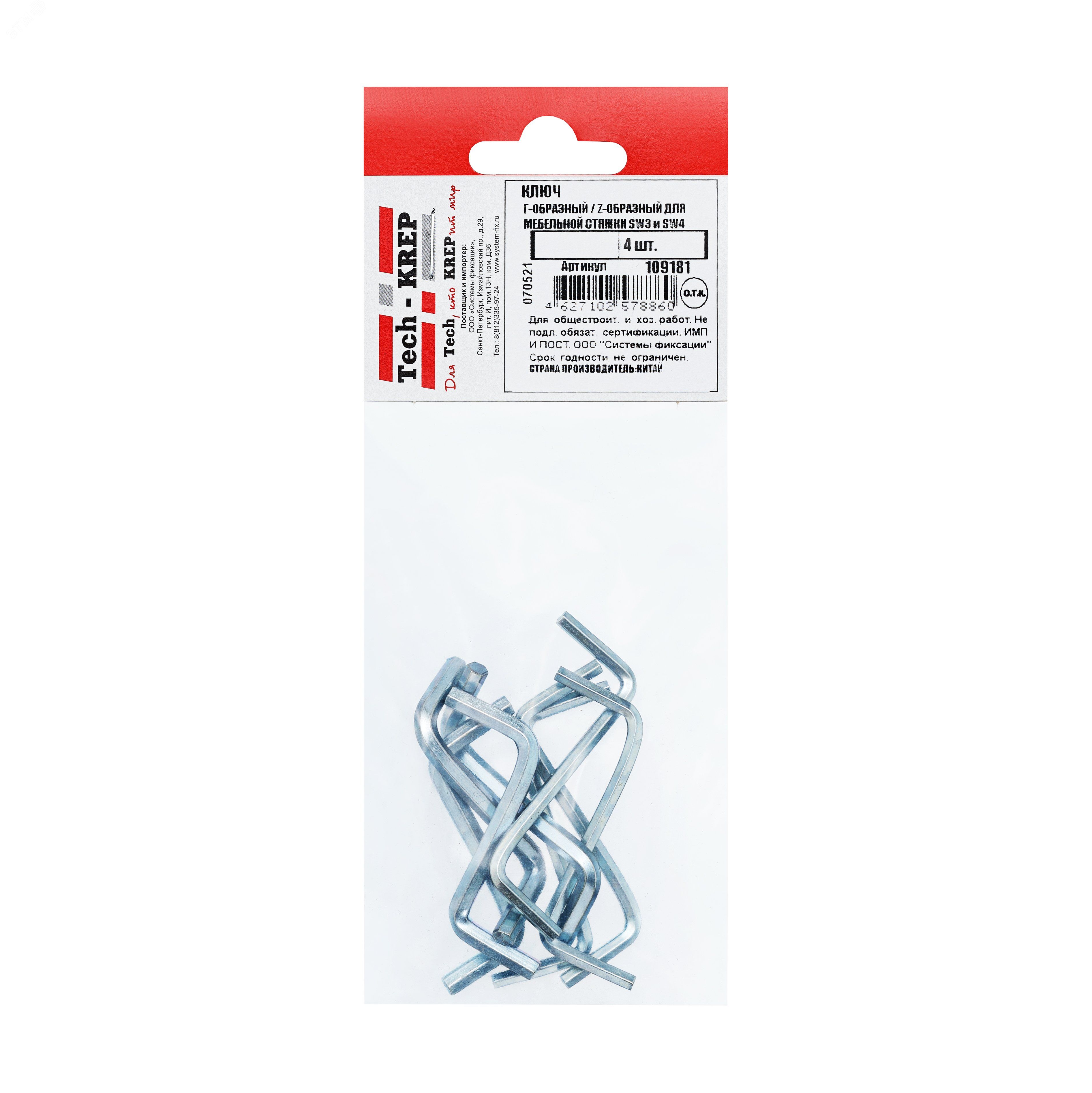| Набор ключей Z-образных для мебельной стяжки SW3 и SW4 оцинк. (4 шт) - пакет | 109181 | Tech-KREP | 11.02.2026 | Под заказ | 32,69 ₽ | уп. | от 30 дней |