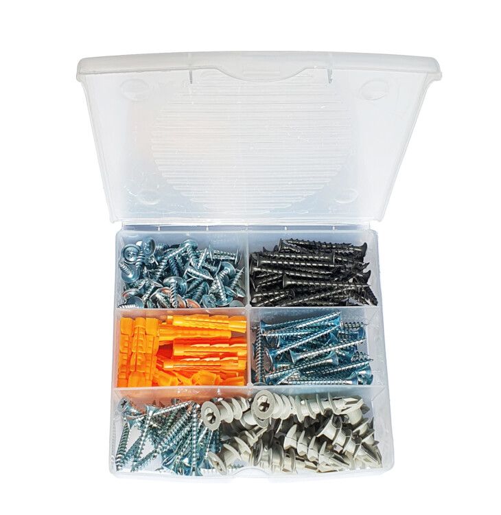 Набор крепежа №1 предназначен для монтажа легких и средних конструкций в жилых, офисных и производственных помещениях. Подходит для фиксации полок, кронштейнов, рам, панелей, электрооборудования и других предметов на стенах из бетона, кирпича, гипсокартона, дерева и металла.