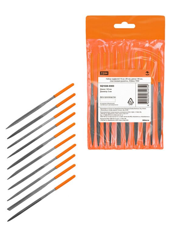 Набор надфилей SQ1026-0303 TDM ELECTRIC - это надежный и универсальный инструмент, который поможет вам справиться с различными задачами по обработке материалов.