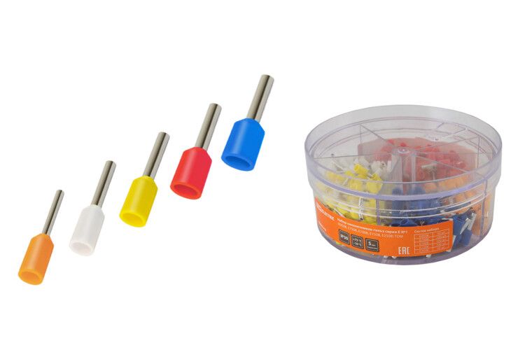 Набор наконечников-гильз серии Е №1 (Е0508, Е7508, Е1008, Е1508, Е2508) от TDM ELECTRIC - это идеальное решение для оконцевания многожильных гибких проводов и подключения их к контактным зажимам различного электрооборудования.
