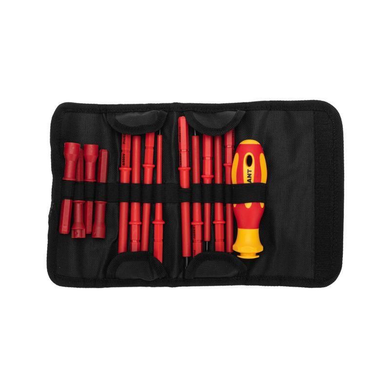 Рукоятка набора отверток диэлектрических, 14 предметов имеет стандартизованный квадратный патрон, позволяющий легко менять отвертки и головки. Все насадки фиксируются плотно, без люфта. Головки можно использовать с трещёткой или рукояткой - совместимы с большинством стандартных инструментальных систем. Убедитесь, что используемые винты точно соответствуют профилю наконечника - особенно важно для Torx T15/T20 и квадратных головок, чтобы избежать срыва граней.