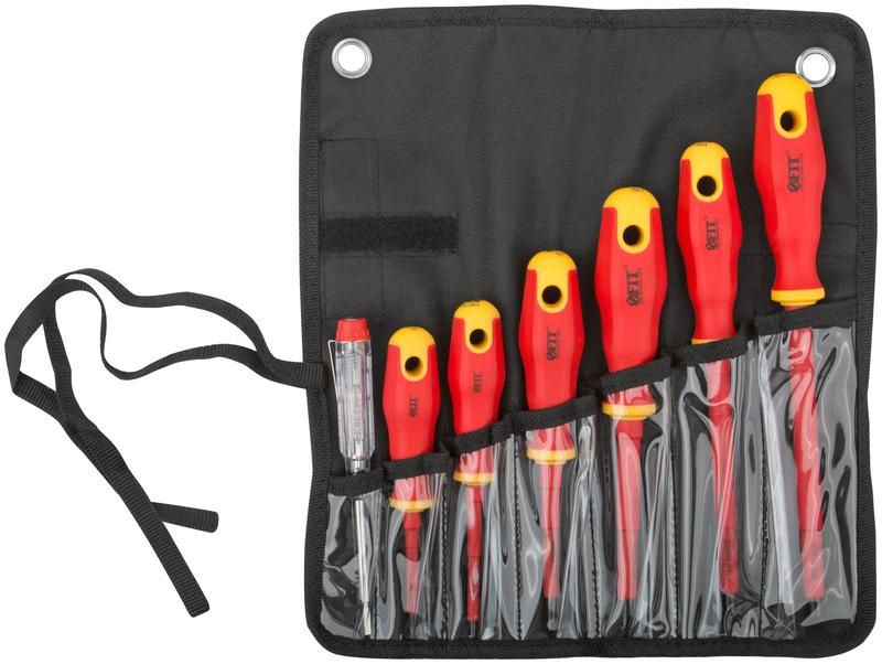 Набор отверток 7 шт 1000В в сумке (6 изолированных/1 индикаторная) - 56130 FIT - это надежный выбор для профессионалов и любителей, которым требуется качественный и безопасный инструмент для работы с электрическими устройствами.
