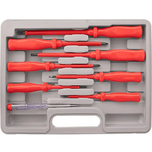 Набор отверток изолированных 1000 В CrV сталь пластик. ручки кейс 8шт+ 1 индикаторная FIT 56127 РОС