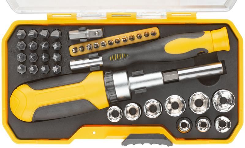 | Отвертки реверсивная и для точных работ, набор 41 шт., пластиковый прорезиненный кейс - 56385 | 09.03.2026 | 36 уп. | 1 280 ₽ | шт. | от 30 дней |