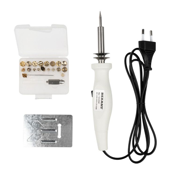 Набор паяльник-выжигатель (21 насадка) 220 В 20/50 Вт от REXANT предназначен для выполнения трёх основных задач: пайки электронных компонентов, точечной резки мягких пластиков и пенопласта, а также художественного выжигания на дереве, коже и воске. Устройство заменяет несколько специализированных инструментов, снижая затраты на оборудование. Подходит для ремонтных работ, рукоделия, моделирования, изготовления декора и образовательных целей.
