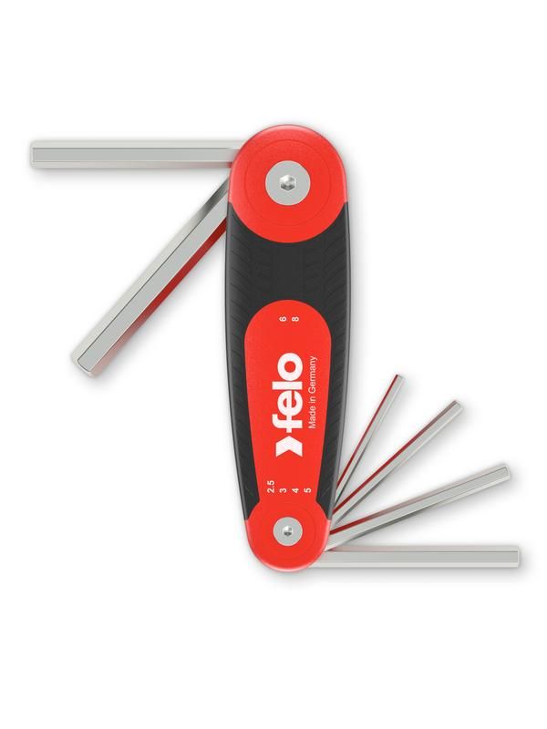 Набор раскладной шестигранных ключей 6шт HEX 2,5-8,0 от бренда Felo (арт. 34500721) - компактный и надёжный инструмент для работы с шестигранным крепежом. Подходит как для домашнего ремонта, так и для профессионального обслуживания оборудования. Все ключи выполнены из закалённой CrMoV-стали с гарантией 15 лет.