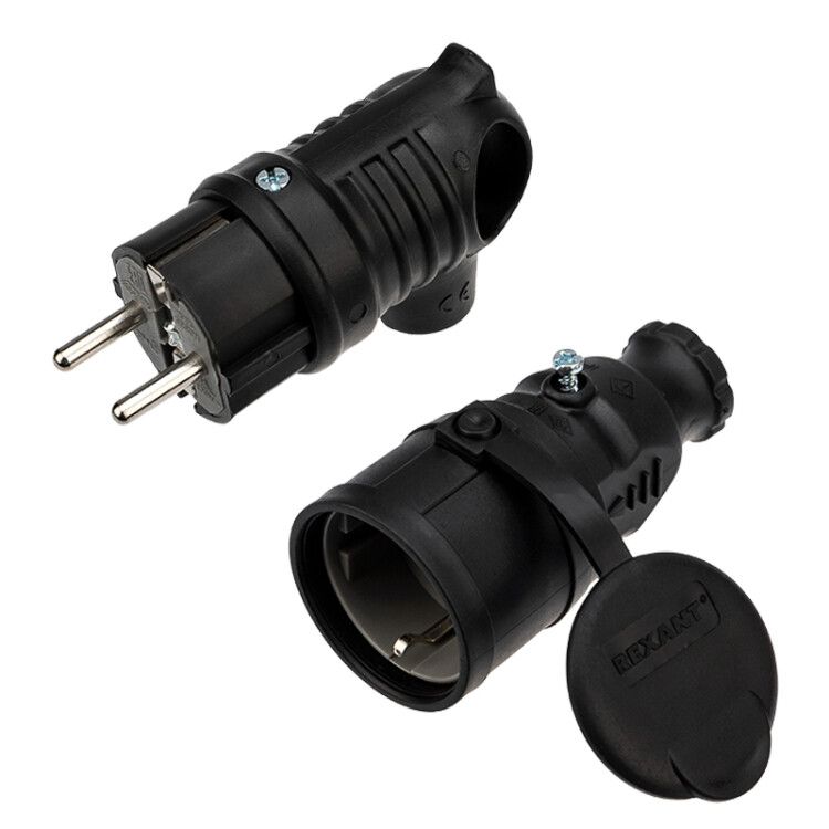 Набор розетка переносная + вилка угловая 16 А, IP44 каучук | 111-002-004 REXANT MEET