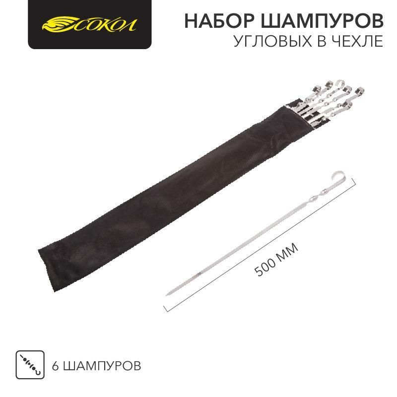 Набор шампуров угловых 6х500мм в чехле СОКОЛ 62-0013