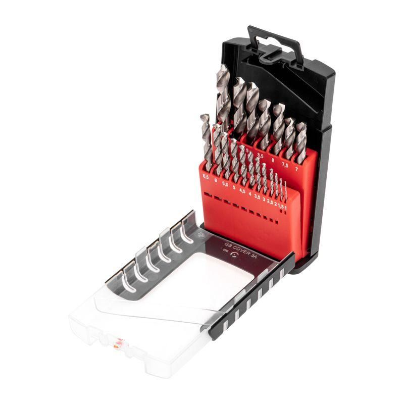 - Количество элементов: 19 сверл + прозрачный пластиковый футляр с маркировкой
