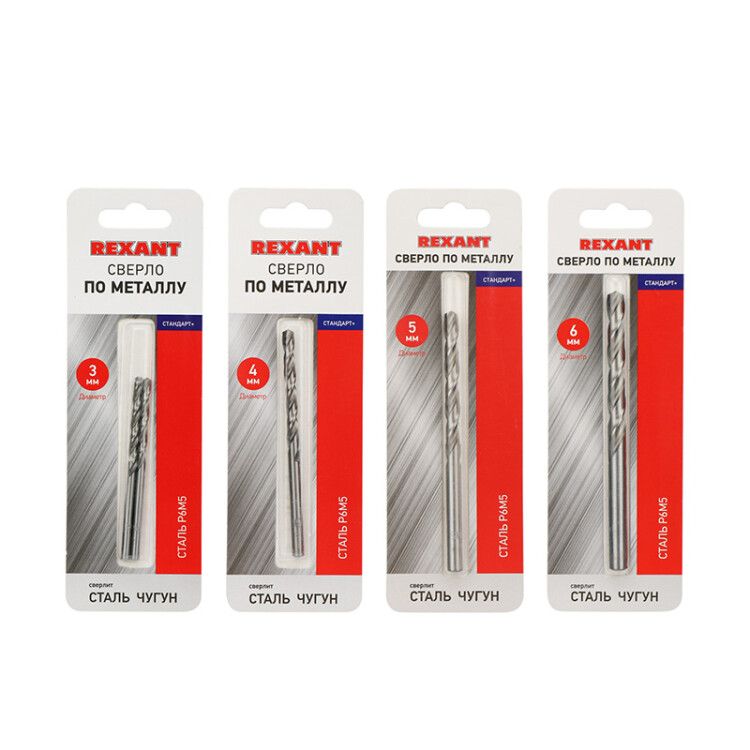 Набор сверл по металлу Слесарь Mini (P6M5) диаметр 3-4-5-6 мм (4 шт.) от REXANT - это незаменимый инструмент для обработки металла. Он состоит из 4 сверл, диаметром 3, 4, 5 и 6 мм, которые подходят для работы с различными типами металлов, включая легированную и нелегированную сталь, стальное литье, серый и ковкий чугун, металлокерамику, цветные металлы и твердые пластмассы.