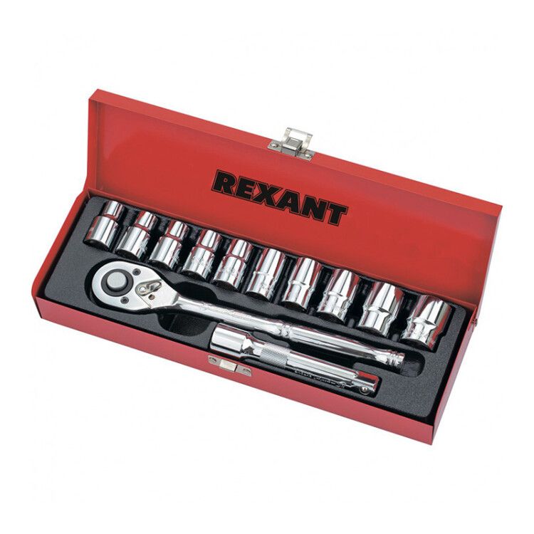 Набор торцевых головок 1/2, головки 10-24 мм, с трещоточным ключом, 12 предметов | 12-8301 REXANT MEET
