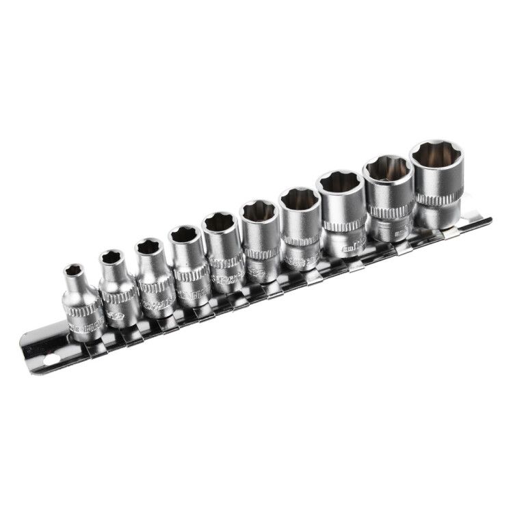 Набор торцевых головок 1/4 дюйма, шестигранные, CrV, 10 штук, 4-13 мм от REXANT - компактный инструмент для точного монтажа и демонтажа мелких резьбовых соединений. Подходит для работы с болтами и гайками в пределах 4–13 мм, особенно там, где нужна высокая точность и ограниченное пространство.