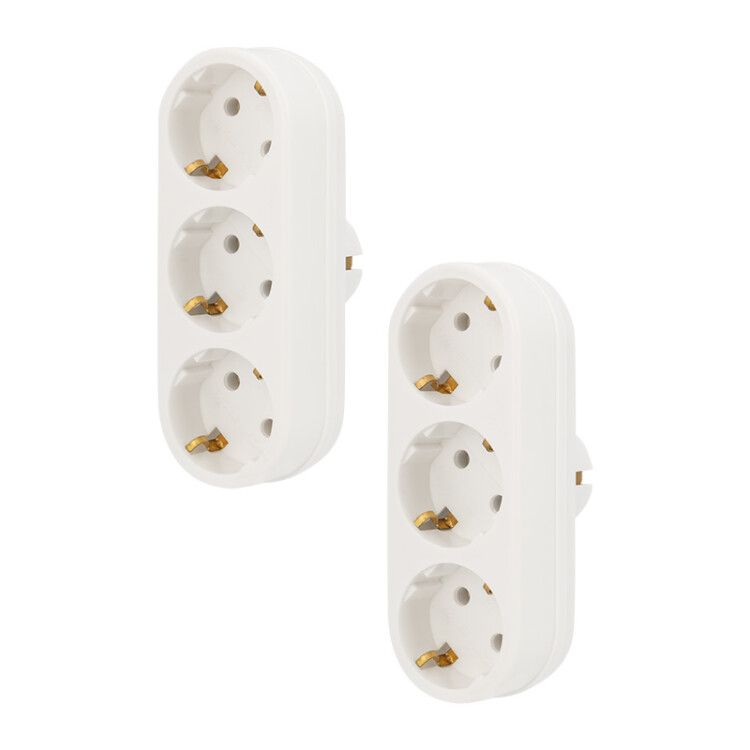 Электрический тройник REXANT 11-1079-2 не имеет собственного кабеля - он представляет собой переходную плату с вилкой на одном конце и тремя розетками на другом. Для установки достаточно вставить вилку в стенную розетку. Все розетки соответствуют стандарту Евро (Schuko), совместимы с большинством европейских и российских вилок. Обязательно проверьте, чтобы розетка, в которую вы вставляете тройник, была исправна и имела надёжное заземление - иначе функция безопасности будет недоступна. Не используйте адаптеры или удлинители поверх этого тройника - это создаёт риск перегрузки.