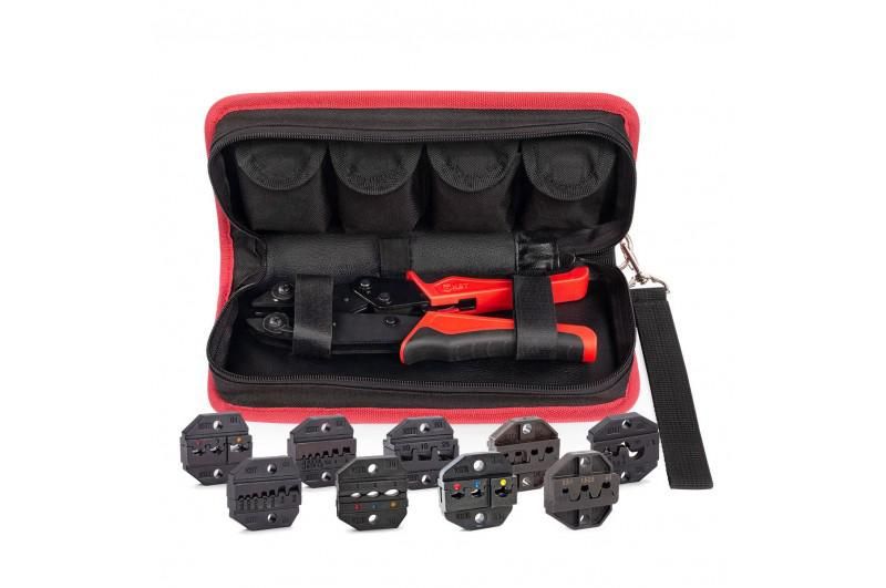 Набор инструментов в сумке серия QUICK PRO, СТО+9, КВТ предназначен для выполнения опрессовки наконечников и гильз методом холодной деформации. Используется в электроустановках, на транспорте, в промышленном оборудовании и при обслуживании распределительных щитов. Особенно эффективен там, где требуется быстрая замена матриц и точное регулирование усилия.