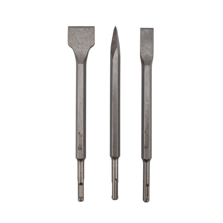 Набор зубил для перфоратора SDS PLUS, 3 предмета от Kranz (арт. kr-91-0430) - компактный набор для долбления, выбивания и демонтажа твердых материалов: бетона, кирпича и камня. Подходит для бытового и профессионального использования с перфораторами, поддерживающими хвостовик SDS-Plus.