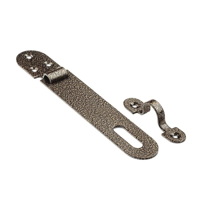 Накладка дверная НД-180 бронз. Секрет Киров 3550 - это надежное и функциональное решение для улучшения безопасности вашей двери. Она представляет собой накладку с ушком под навесной замок, изготовленную из стали с полимерным покрытием.