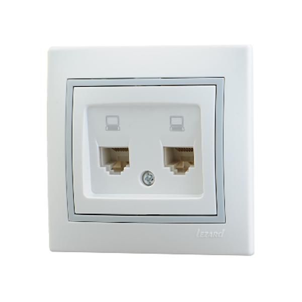 Розетка компьютерная 2-м СП Mira RJ45 16А IP20 с сер. вставкой бел. LEZARD 701-0215-141