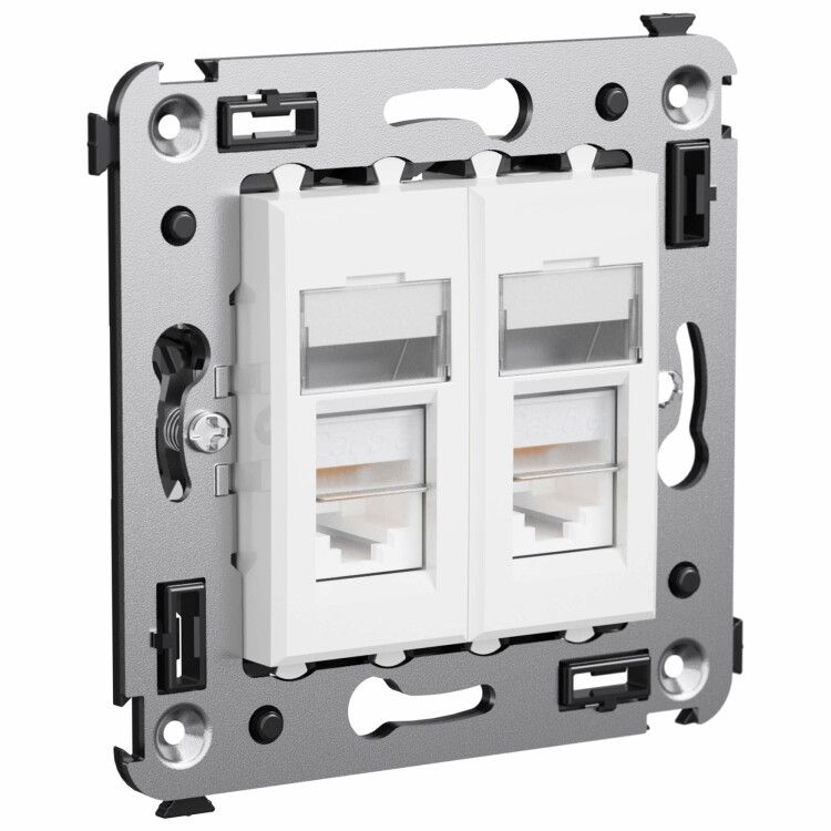 - Розетка 2-местная RJ-45 в стену, категория 6, серия Avanti, ДКС хорошо работает в паре с патч-панелями той же серии - обеспечивается единая стандартизация всей системы
