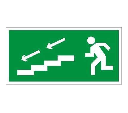 Пиктограмма ПЭУ 005 используется для обозначения направления движения при эвакуации - вниз по лестнице и налево. Она устанавливается рядом с аварийным освещением, чтобы люди могли быстро определить безопасный выход даже при отключении основного света. Применяется в зданиях с многоуровневой планировкой: офисах, жилых домах, больницах, торговых центрах и других объектах, где требуется четкая визуальная ориентация во время ЧС.