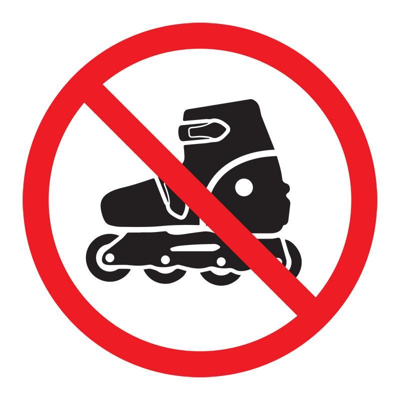Наклейка используется для обозначения зон, где запрещено передвижение на роликовых коньках, самокатах, скейтах и других устройствах с колёсами. Её размещают на входных дверях, стенах, ограждениях, поручнях и других видимых поверхностях. Подходит для торговых центров, школ, больниц, офисов, спортивных комплексов и общественных зон, где важно исключить риск травм из-за быстрого перемещения на роликах.