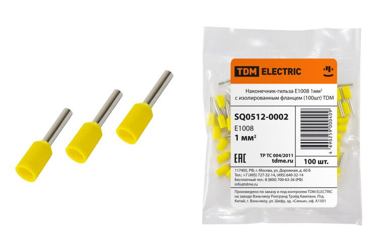 - Этот наконечник-гильза Е1008 1 мм2 с изолированным фланцем (100 шт) от TDM ELECTRIC лучше выбирать вместо аналогов без изоляции, если есть риск случайного касания соседних клемм