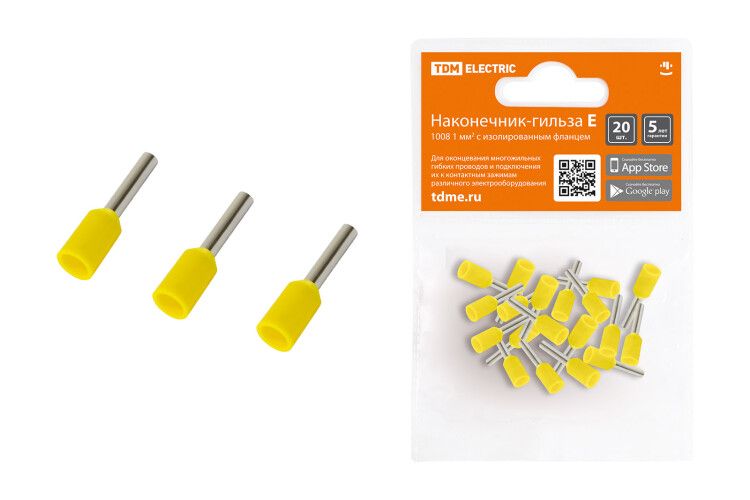 Наконечник-гильза Е1008 1 мм2 с изолированным фланцем (20 шт) от TDM ELECTRIC предназначен для надёжного оконцевания гибких медных проводов, обеспечивая прочный контакт при винтовом креплении. Удобен для быстрого монтажа и частых перенастройек электрических цепей.