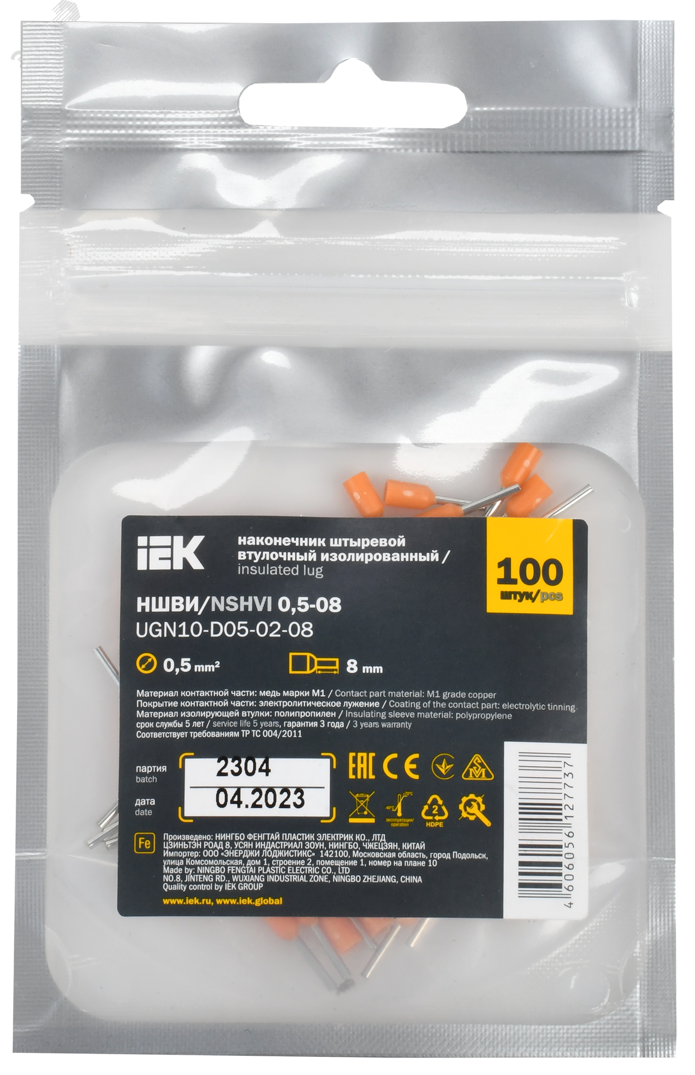 - Храните наконечник кабельный НШВИ 0,5-8 оранжевый (100 шт/упак) в сухом месте - хотя изоляция устойчивая, влага может вызвать коррозию лужёного слоя при длительном воздействии.