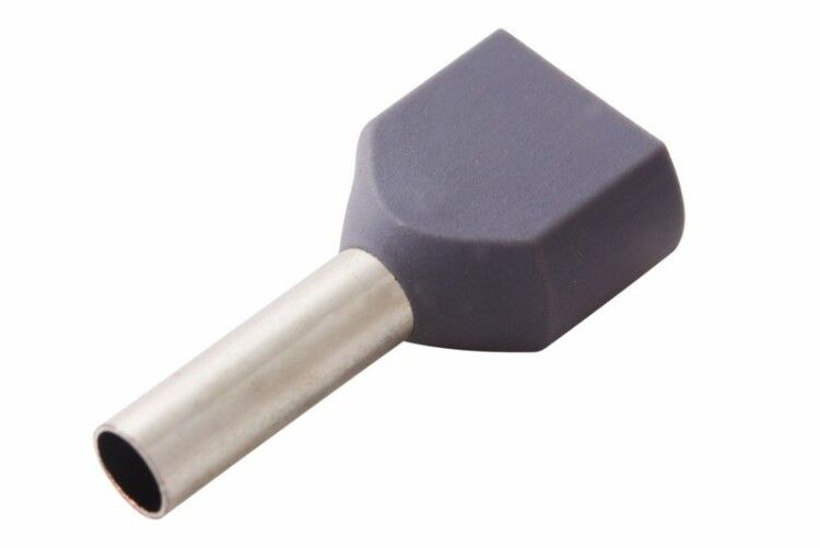 Наконечник штыревой втулочный изолированный F-10 мм 2х2.5 мм2 (НШВи(2) 2.5-10 / НГи2 2,5-10) серый требует обжима специальным инструментом. Для качественной установки используйте кримперы с матрицей под размер 2,5 мм2: