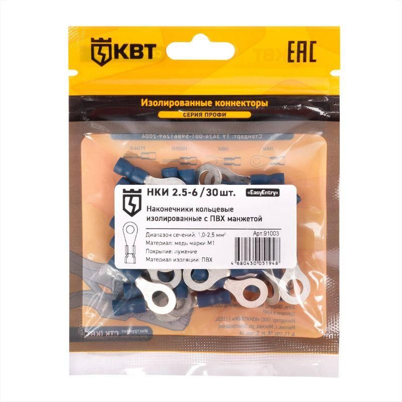 | Наконечник кабельный кольцевой изолированный НКИ 2.5–6 (30 шт/уп) с ПВХ изоляцией в мини-упаковке | 91003 | КВТ | 13.03.2026 | 293 уп. 30 шт. | 235,81 ₽ | уп. | от 30 дней |