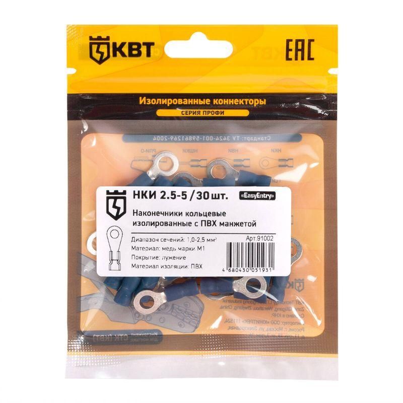 | Наконечник кабельный кольцевой изолированный НКИ 2.5-5 (30шт/упак) с ПВХ изоляцией в мини-упаковке | 91002 | КВТ | 13.03.2026 | 65 уп. 30 шт. | 184,91 ₽ | уп. | от 30 дней |