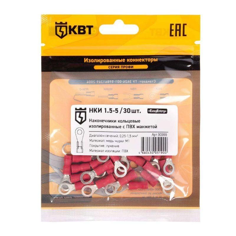 | Наконечник кабельный кольцевой изолированный НКИ 1.5-5 (30шт/упак) с ПВХ изоляцией в мини-упаковке | 90999 | КВТ | 13.03.2026 | 205 уп. 30 шт. | 148,26 ₽ | уп. | от 30 дней |