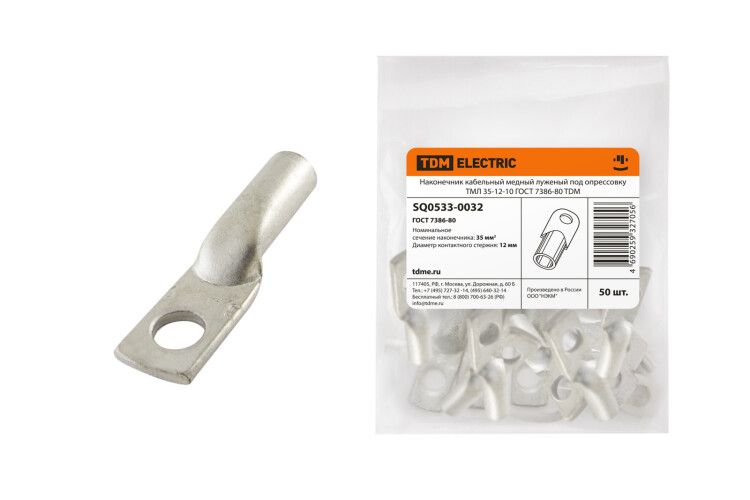 | Наконечник медный луженый ТМЛ 35-12-10 ГОСТ 7386-80 | SQ0533-0032 | TDM | 05.03.2026 | Под заказ | 94,09 ₽ | шт. | от 30 дней |