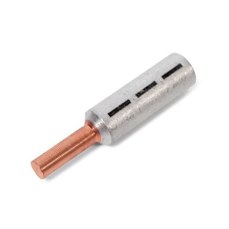 Наконечник кабельный штыревой алюмомедный НШАМ 240 изготовлен в соответствии с требованиями к качеству электротехнических изделий для силовых цепей. Соединение алюминия и меди методом фрикционной сварки исключает риск электрохимической коррозии, характерной для простых механических соединений. Работает в пределах нормативного напряжения до 1 кВ, что соответствует классу безопасности для распределительных систем низкого напряжения.