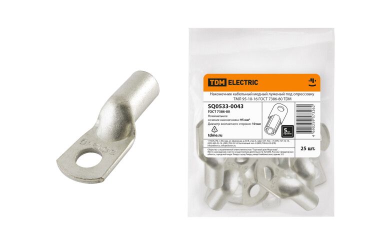 | Наконечник медный луженый ТМЛ 95-10-16 ГОСТ 7386-80 | SQ0533-0043 | TDM | 06.03.2026 | Под заказ | 276,05 ₽ | шт. | от 30 дней |